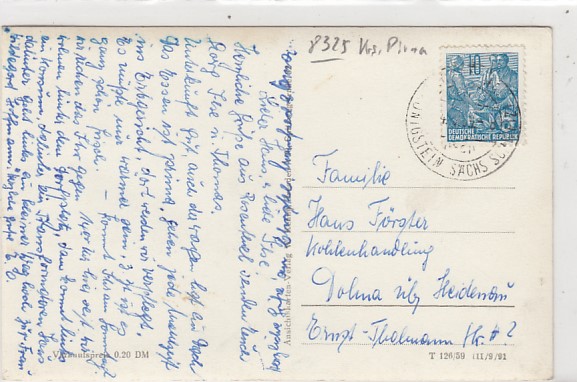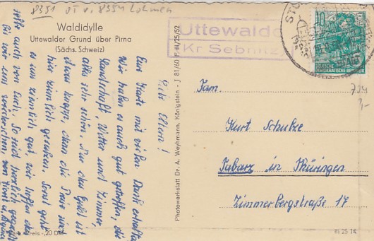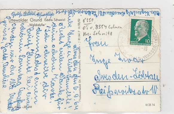 Lohmen OT Uttewalde in Sachsen Uttewalder Grund Landpoststempel 1960