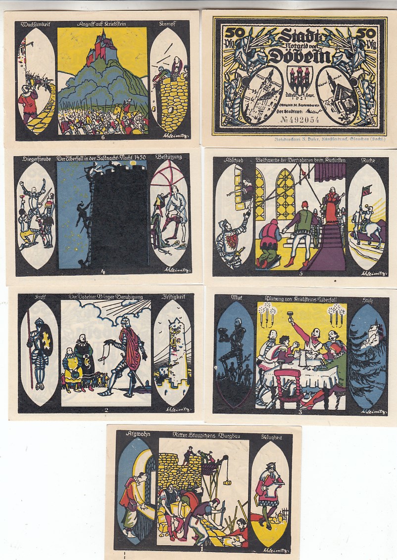 Döbeln in Sachsen 7 Scheine Notgeld 1921