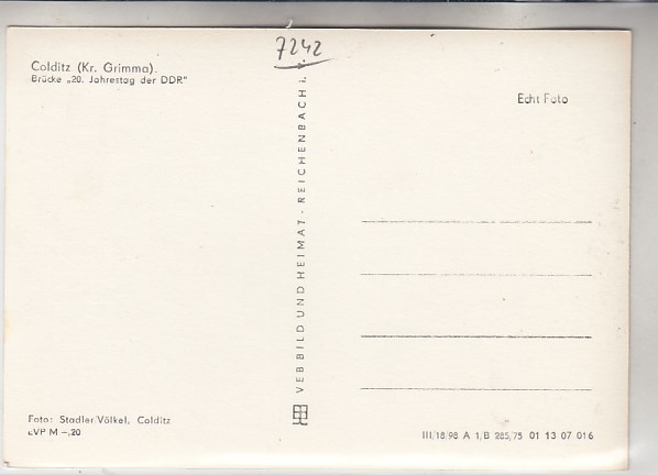 Colditz in Sachsen Brücke 20 Jahrestag der DDR 1975