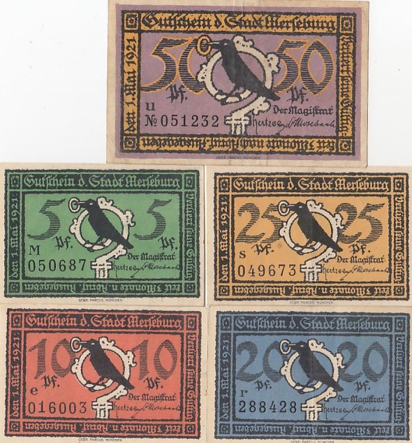 Merseburg in Sachsen-Anhalt 5x Notgeld Geldschein ca 1920