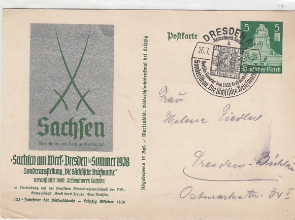 Privatganzsache Sachsen Sonderstempel Dresden 1938