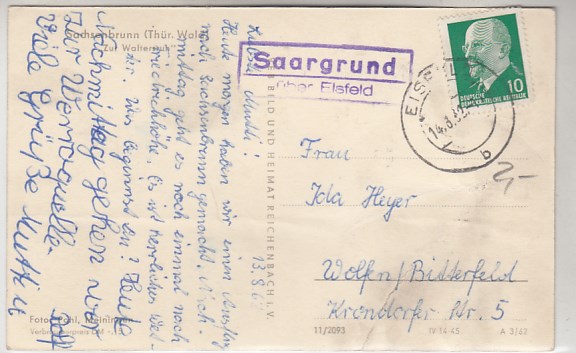 Sachsenbrunn Ansichtskarte mit Landpoststempel Saargrund