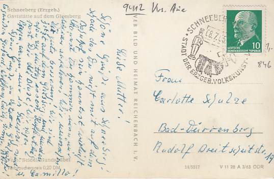 Schneeberg im Erzgebirge in Sachsen Gaststätte Gleesberg 1963