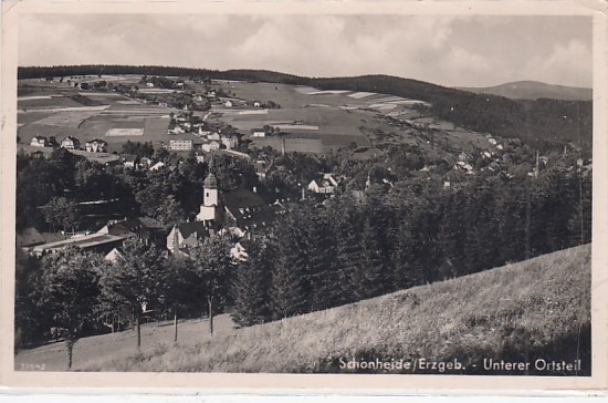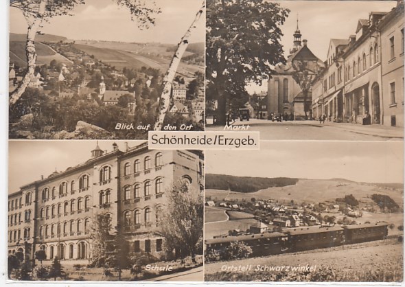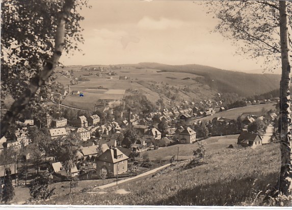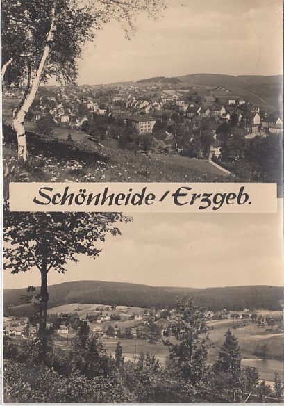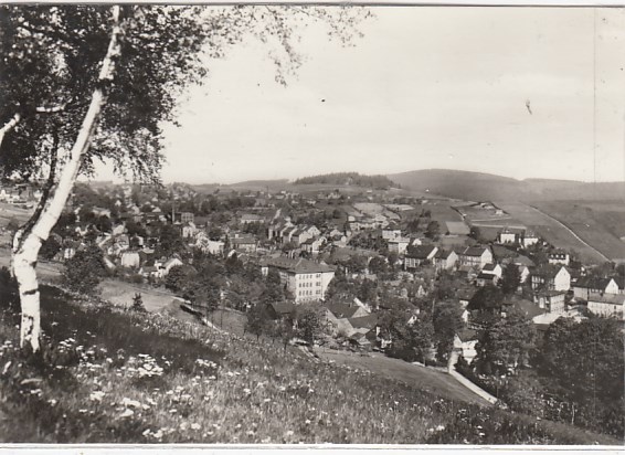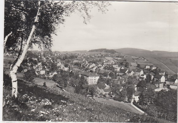 Schönheide im Erzgebirge in Sachsen mit Eisenbahn 1965