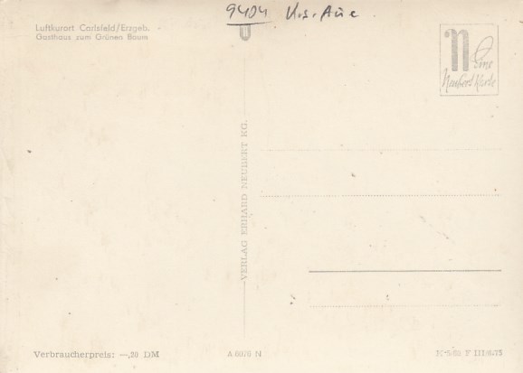 Carlsfeld im Erzgebirge in Sachsen Gasthaus zum Grünen Baum 1960