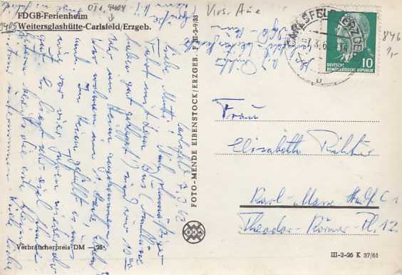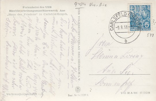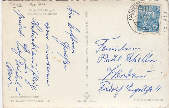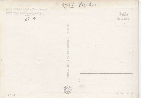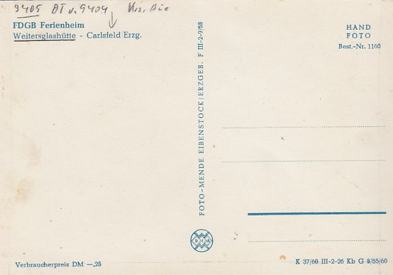 Carlsfeld im Erzgebirge in Sachsen Ferienheim Blema Aue 1957