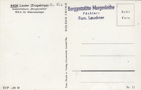 Lauter im Erzgebirge in Sachsen Aussichtsturm Morgenleithe 1968
