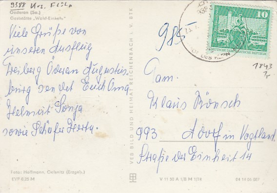 Oederan in Sachsen Gaststätte Waldeikehr 1974