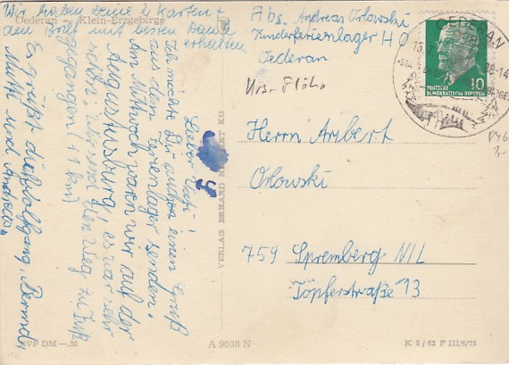 Oederan in Sachsen Erzgebirgsschänke 1969