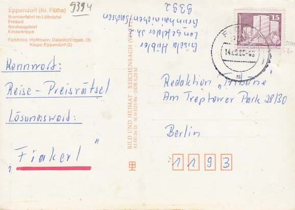 Oederan in Sachsen Gaststätte Waldeikehr 1982