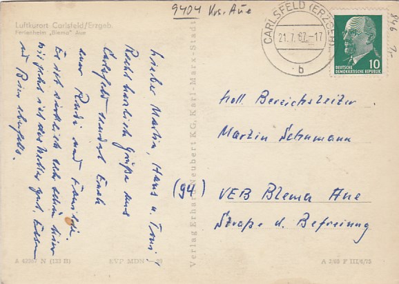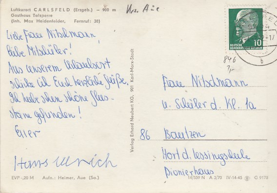 Carlsfeld im Erzgebirge in Sachsen Ferienheim Blema Aue 1965