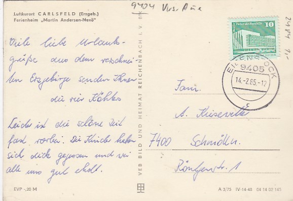 Carlsfeld im Erzgebirge in Sachsen Ferienheim Martin Andersen-Nexö 1975