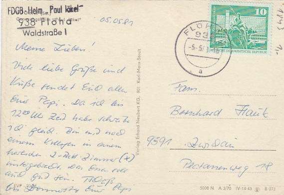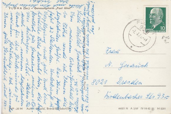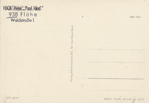Flöha im Erzgebirge in Sachsen Genesungsheim Paul Jäkel 1970