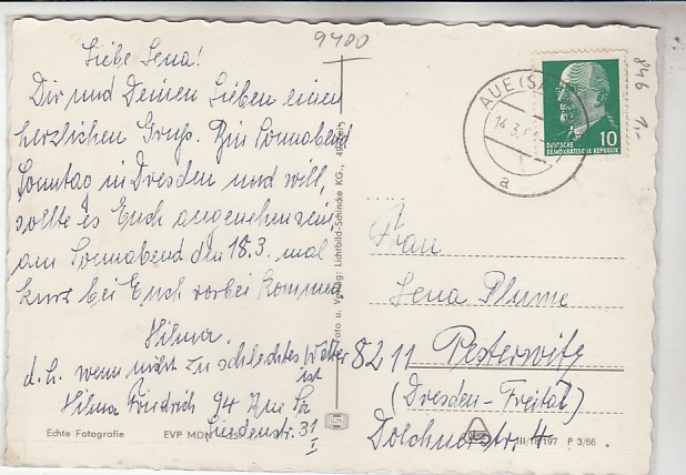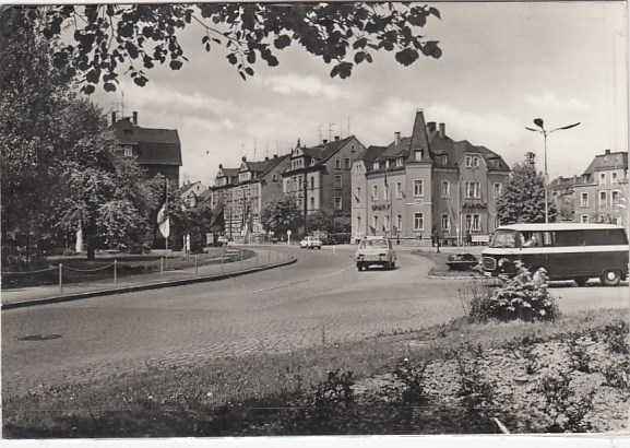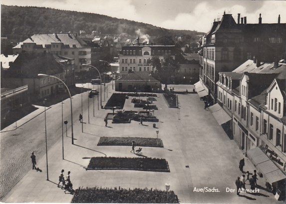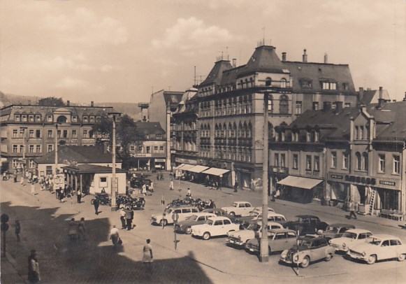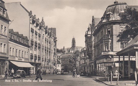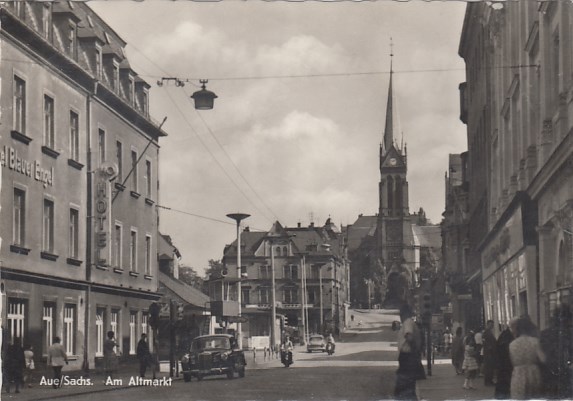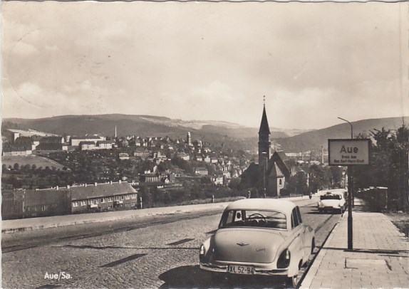 Aue im Erzgebirge in Sachsen mit Wartburg Auto 1966