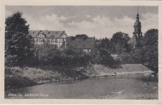Flöha im Erzgebirge in Sachsen Kirche und Schule 1955