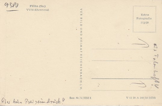 Flöha im Erzgebirge in Sachsen VVN-Ehrenmal 1959