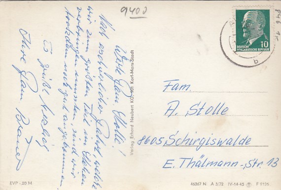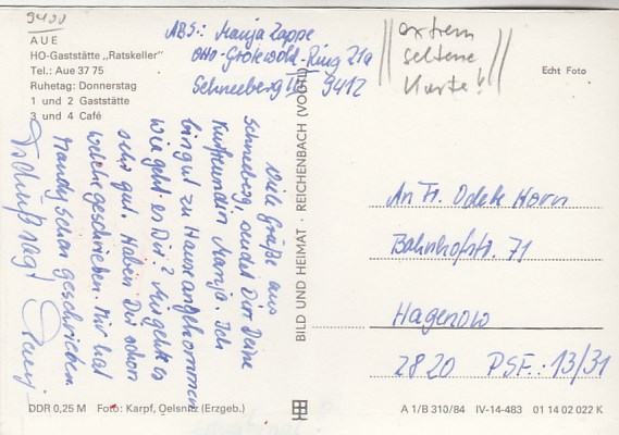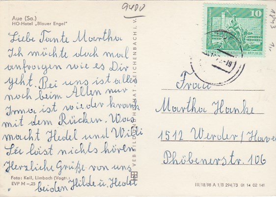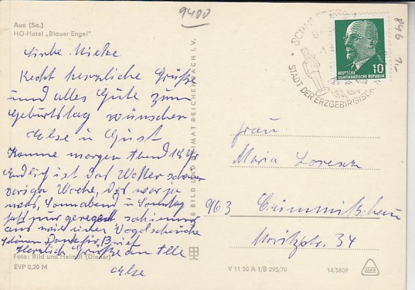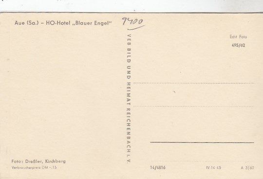 Aue im Erzgebirge in Sachsen Hotel Blauer Engel 1979