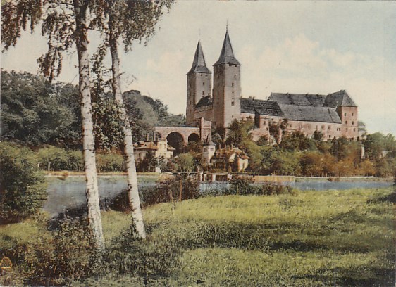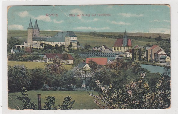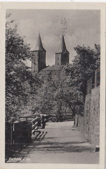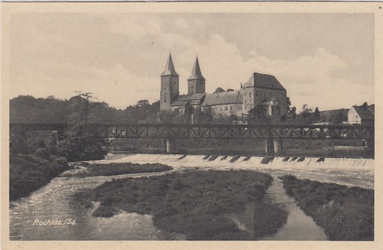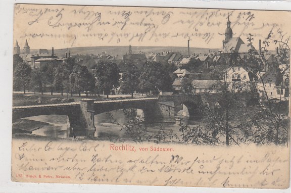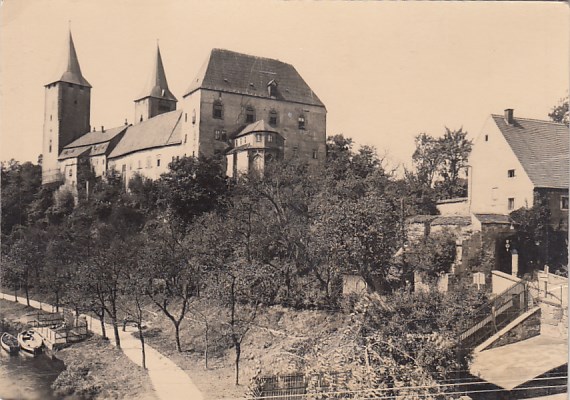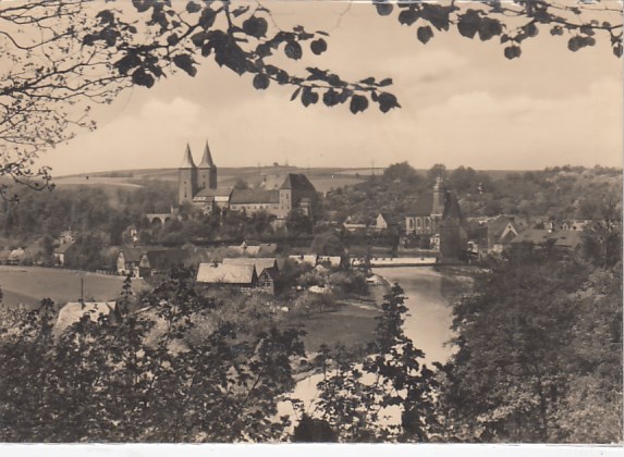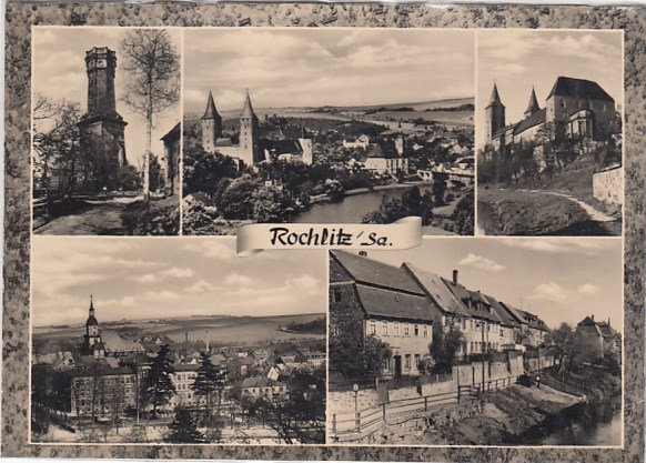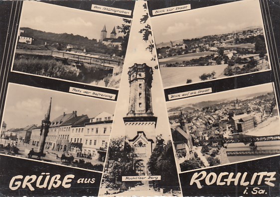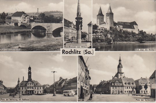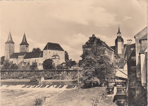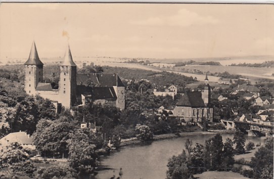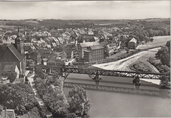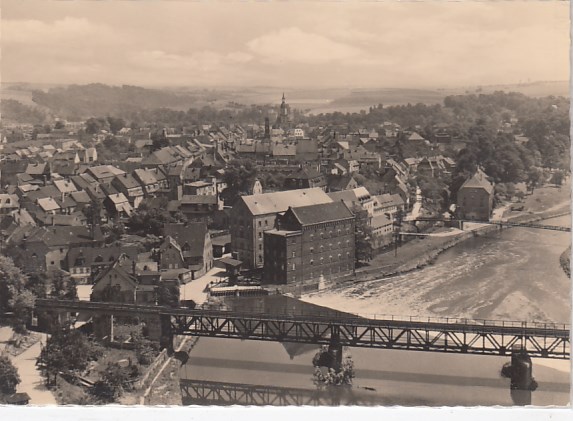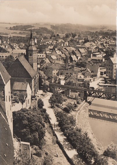 Rochlitz in Sachsen mit Eisenbahnbrücke 1963