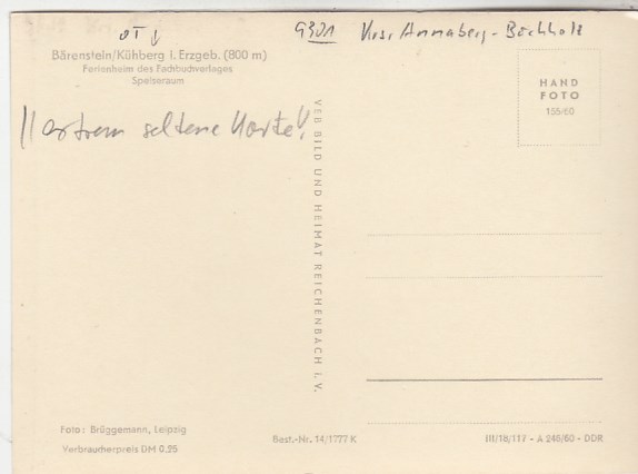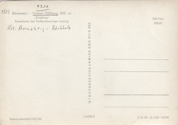 Bärenstein OT Kühberg in Sachsen Ferienheim des Buchverlages 1964