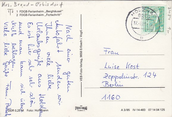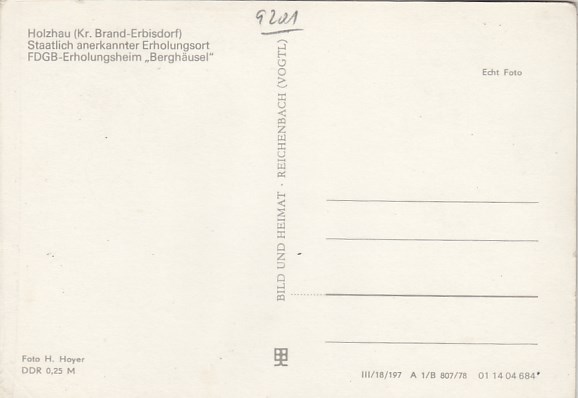 Rechenberg-Bienenmühle OT Holzhau Erzgebirge in Sachsen Handwerkerheim 1963