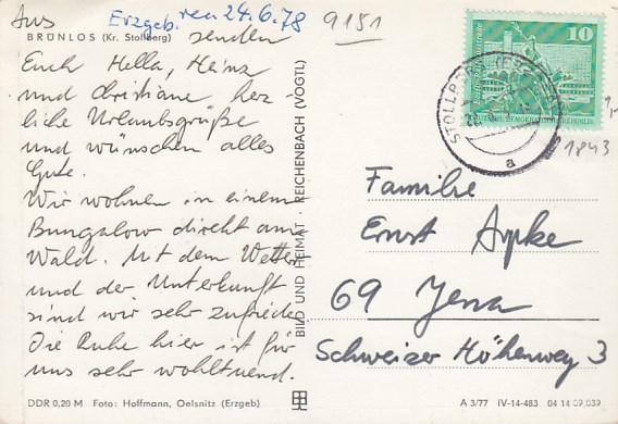 Zwönitz OT Brünlos im Erzgebirge Sachsen 1977