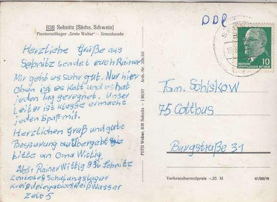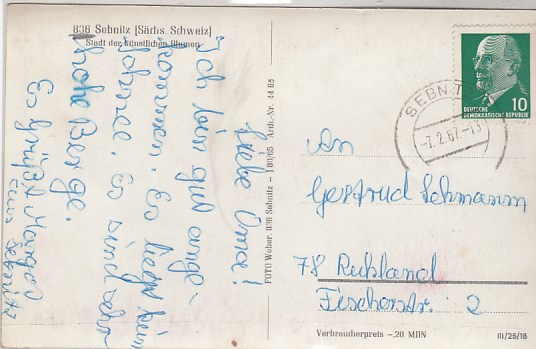 Sebnitz in Sachsen Finkenberg 1964