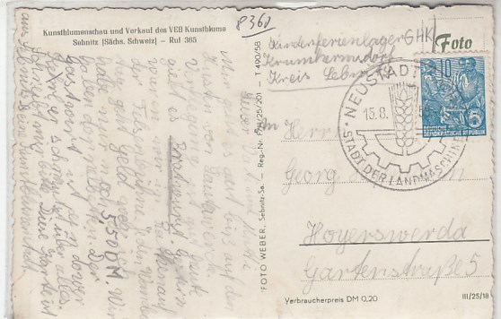 Sebnitz in Sachsen Kunstblumen Ausstellung 1961