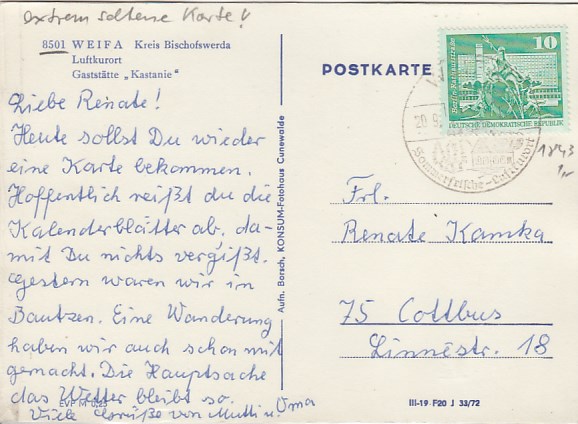 Gemeinde Steinigtwolmsdorf in Sachsen OT Weifa Oberlausitz Gaststätte Kastanie 1972