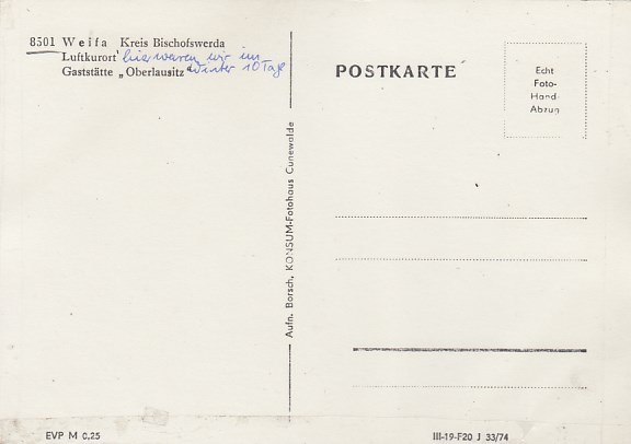 Gemeinde Steinigtwolmsdorf in Sachsen OT Weifa Oberlausitz 1974