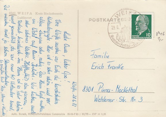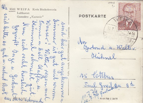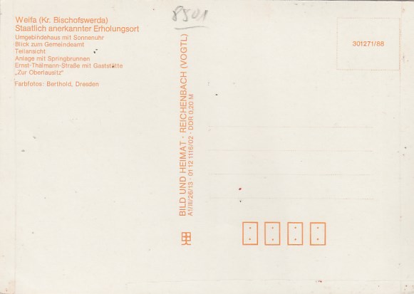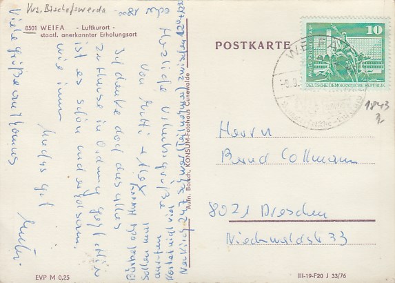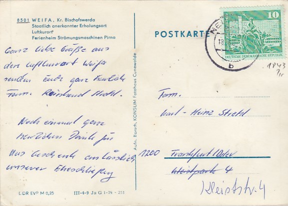 Gemeinde Steinigtwolmsdorf in Sachsen OT Weifa 1976