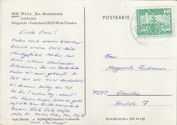 Gemeinde Steinigtwolmsdorf in Sachsen OT Weifa Oberlausitz 1970