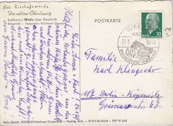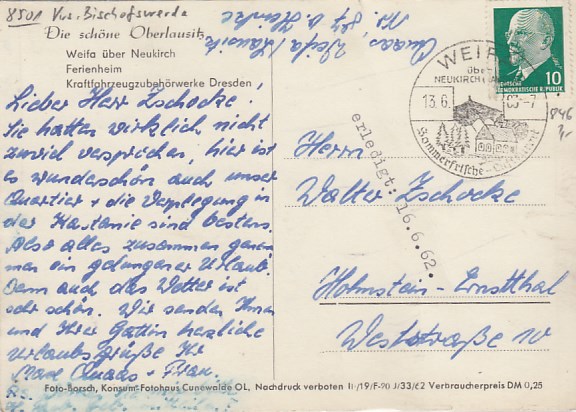 Gemeinde Steinigtwolmsdorf in Sachsen OT Weifa Oberlausitz 1963