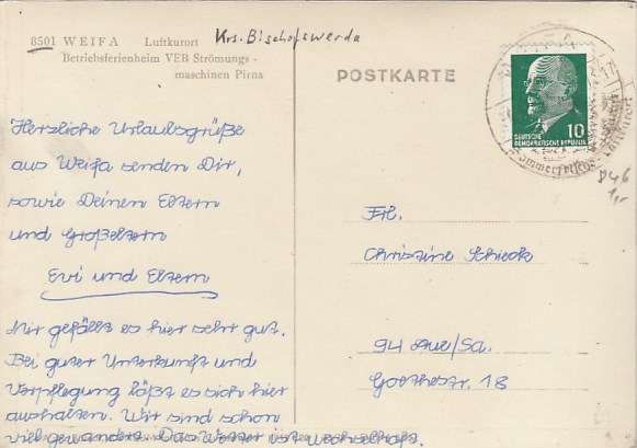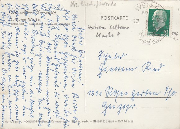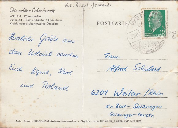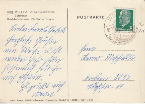Gemeinde Steinigtwolmsdorf in Sachsen OT Weifa 1966