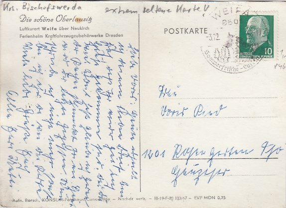Gemeinde Steinigtwolmsdorf in Sachsen OT Weifa Oberlausitz 1967