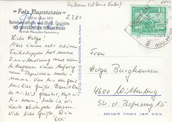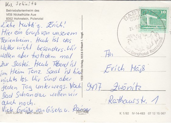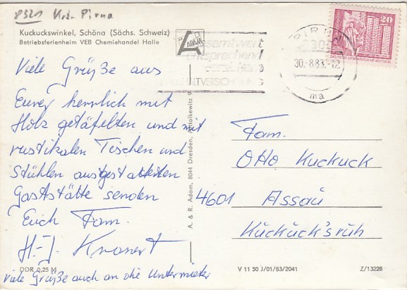 Reinhardtsdorf-Schöna in Sachsen Kuckuckswinkel 1983