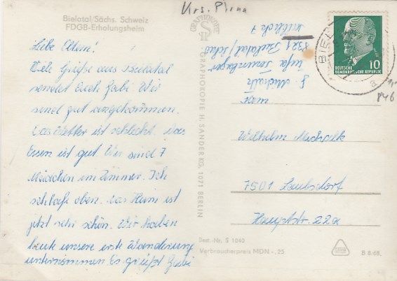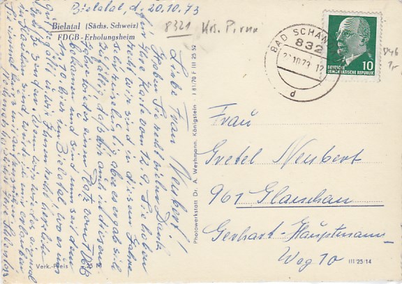 Reinhardtsdorf-Schöna in Sachsen Jugendherberge 1972