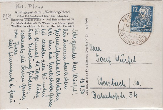 Hohnstein in Sachsen Hotel Polenztal 1959