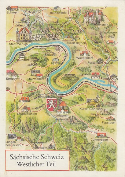 Bad Schandau in Sachsen Wehlen Thümsdorf Struppen Königstein Cunnersdorf AK als LAndkarte 1987