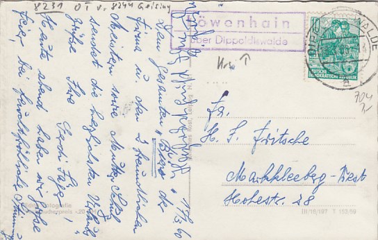 Löwenhain ist ein Ortsteil von Altenberg im Osterzgebirge in Sachsen bei Geising 1959 mit Landpo