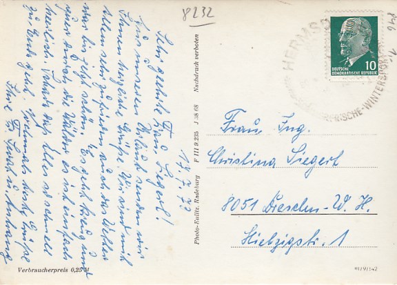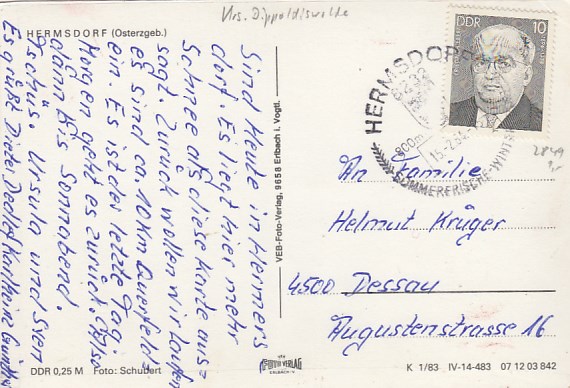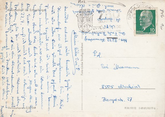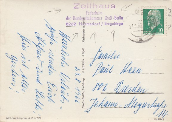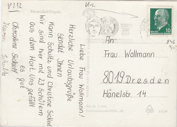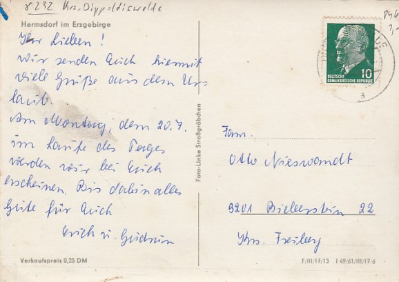 Hermsdorf im Erzgebirge in Sachsen Wanderquartier 1965