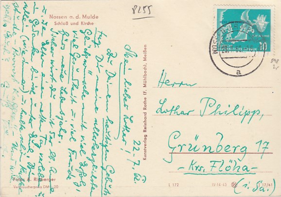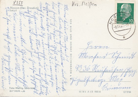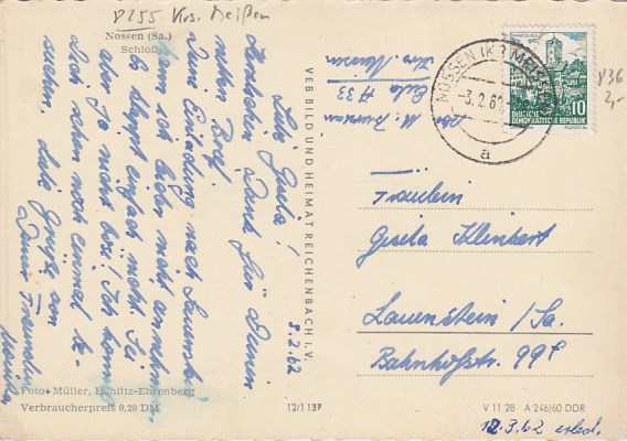 Nossen in Sachsen 1963 mit Schloß Eintrittskarte