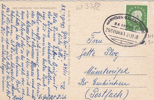 Bad Harzburg Seilbahn Schwebebahn Bahnpoststempel 1960