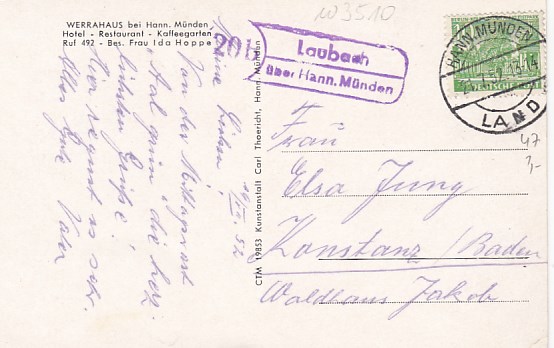 Werrhaus bei Hann.Münden Landpoststempel Laubach