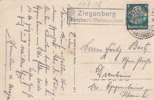 Ziegenberg im Taunus Schloss Landpoststempel Butzbach