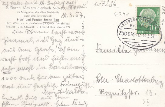 Landpoststempel auf Brief Bierbronnen Tiengen