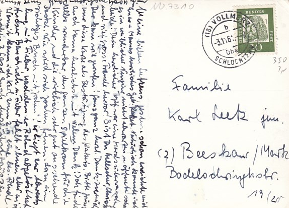 Gerleve bei Cosefeld Landpoststempel 1958 Benediktiner Abtei