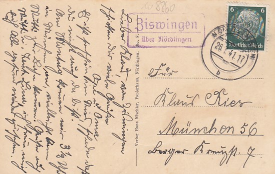 Homburg Saarpfalz Autohöhenstraße Bahnpoststempel Feldpoststempel 1941