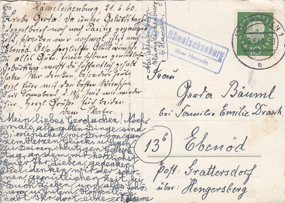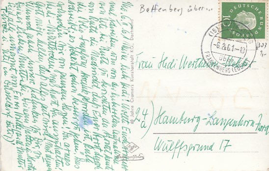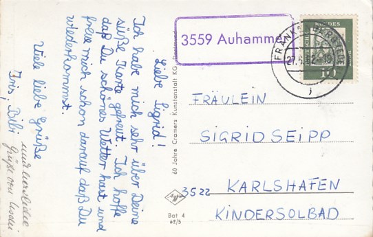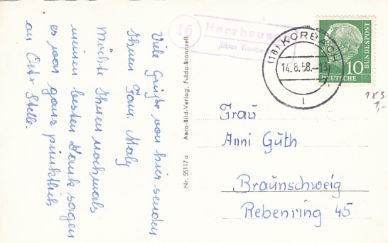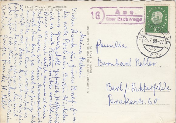 Landpoststempel Aue Eschwege Schloßpark 1960
