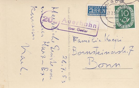 Landpoststempel Auerhahn AK Brockenblick