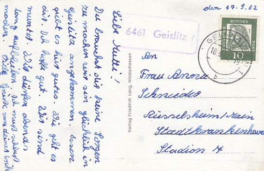 Landpoststempel Geislitz AK Gelnhausen
